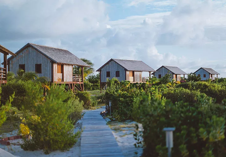 Positioned along the beachfront, each bungalow boasts awe-inspiring views of the bay and adjacent mangroves. Step onto your private balcony, complete with an outdoor living area, dining space, and refreshing shower, and immerse yourself in the captivating coastal scenery.
